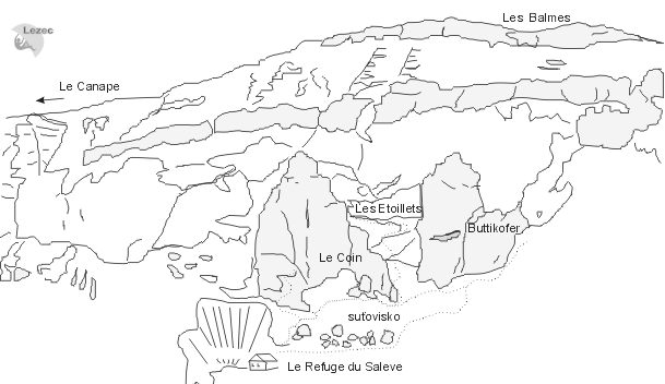 Tato napůl horská a přesto sportovní oblast nabízí hodně přes 450 cest v různě strukturovaných stěnách, převažují zde plotny a poklopená členitá skála, ale najdete zde I řadu pěkně ostrých cest v mírně převislých dlouhých stěnách. Přestože přístup je pouhých 10 – 15 minut (pokud ho trefíte) ocitnete se zakrátko v místě, kde divoce rozeklané bloky v bludišti cestiček přímo vyzývají k vybalení věcí a puštění se do díla. To vše v nádherné scenérii, které vévodí výhled na rozsáhlou kotlinu jezera Lac Leman u Ženevy. 650 metrů je nadmořská výška Refuge du Saleve a samotná stěna pak ční do výše až 1210 metrů.