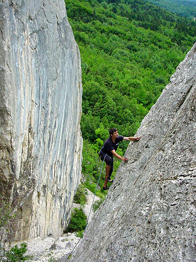 Majitel obchodu Bernard, je také autor průvodce takže nejen nakoupit je možno ale i vyjasnit si některé nejasnosti. Třeba kolem klasifikace, jedno odpoledne jsem se usilovně snažil v odvážné cestě Ete D’urgence. (minochodem super kousek), čtvrtý pokus jsem už nedával, asi by ho opět zakončil let v poměrně odvážně zajištěné cestě, protože křížový přesah doprava do vyklopené dírky byl po 15m atletického lezení nějak mimo můj dosah. Říkal jsem si, no aspoň jsem si pěkně zalezl a zapadal a tahle cesta to musí být aspoň bé plusko neli céčko, ale marná práce bez průvodce. Pak jsem do něj nahlédl po návratu a frustrovaně zjistil, že to bylo jen 7a. Tak například na tohle bych se Brenarda chtěl zeptat.