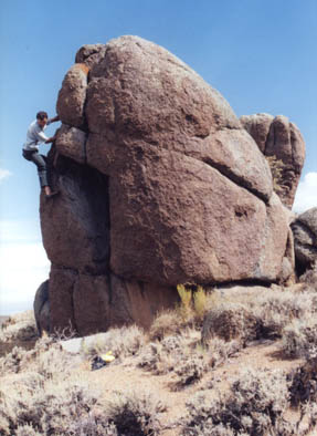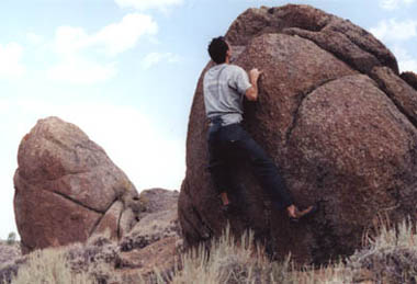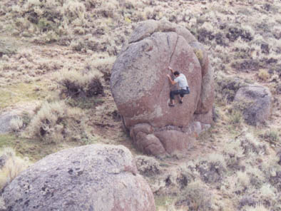 Při našem putování jsme zabloudili i do městečka Boulder ve státě Wyoming (neplést se známým centrem lezení Boulder v Coloradu). Jeli jsme už celý den a hledali jsme místo vhodné pro přespání s možností umytí a pokud možno gratis. Odbočili jsme tedy ze silnice směřující dále na sever k Jackson Hole a po příšerně rozbité prašné cestě jsme se hrkotali ke slibně vypadajícímu pohoří na obzoru (Bridger Teton ? Wing River Range). Neměli jsme nějaký pevný plán a strávit několik dnů v pustých Tetonech se nám zdálo jako dobrý nápad. Cesta se motala ponurou pelyňkovou stepí, pokrývající ohromě rozsáhlé morény v předhůří, a zdála se nekonečná. Už skoro po tmě jsme se s určitými obavami z místních farmářů (nevěděli jsme jestli nejsme na soukromé půdě) plácli na břehu jezera obklopeného morénami. Po umytí a pozření nějaké potravy jsme upadli do spacáků. Ráno nám nabídlo pohled do krajiny snů každého boulderisty.
