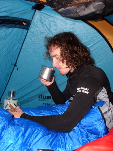 I přes nepříznivé počasí se našim ruským pilotům podařilo dopravit J. Doudlebského, P. Hnojnu, M. Novotného, M. Blážu a R. Lienertha do prostoru BC. Počasí je nyní velmi špatné, vytrvale prší a je nulová viditelnost, takže doufáme, že to brzy skončí a budeme moct začít aktivitu na kopci.