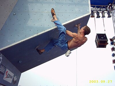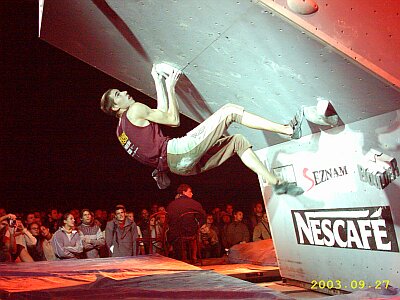 Do závodu se přihlásilo 27 borců a 7 borkyň. Účast relativně malá, ale stále více jak polovina závodníků patří k české lezecké špičce. Nevím, jestli se vytrácí v lezcích závodní duch nebo zda se příliš bojí závodních bouldrů, ale myslím, že jak v Brně tak i teď na Letné byly kvalifikační bouldry spíše lehčí a že si v nich všichni dobře zalezli. Ve startovním poli chyběli kvůli Rock Masteru T. Mrázek,V.Kotasová a R. Souček. Další, kdo svou účastí chyběl byl především K.Černý (Black – vítěz Boulder Contestu 2002), P. Kořán, D. Mazák, Š. Neústupný, R. Štefánek, M. Čermák (na něho jsme se těšili obzvlášť…) a desítka dalších borců. Doufám, že na příští závody najdou více odvahy a že i ostatní lezci zkusí změřit svoje síly.