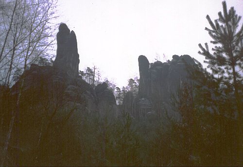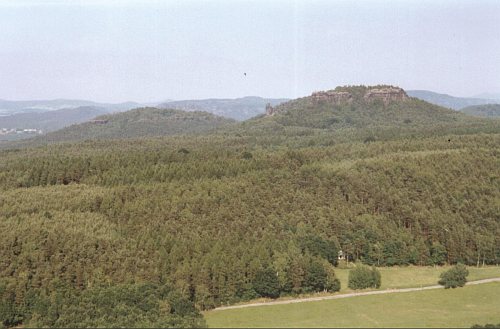 V 18. díle seriálu ( plus mínus jeden ) je psáno o Papsteinu. Aby nebyl tento díl tak chudý na obrázky, využiji jej k ilustraci právě Papsteinu.  Na první fotce je samotný kopec Papstein s výraznou  věží Grosse Hunskirche. Nalevo od ní je vidět další kopec ( Kleinhennersdorfer Stein s jednou lezenou věží ) a za ním napravo v dáli stěny Schrammsteinů. Znalci objeví nad doleva ubíhajícím úbočím posledně zmiňovaného kopce vrchol Falkensteinu. Na další fotce leze Miloš Jehlička Direkter Strubichweg za VIIc na Gr. Hunskirche. A na poslední je Feiner Riss VIIIc, RP IXb na Agetrennte Wand v sousední oblasti Gohrisch.