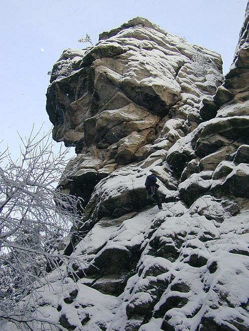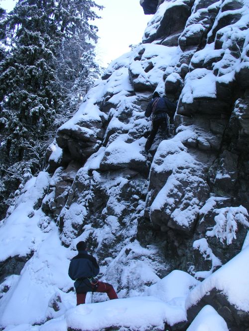 Ač se zdají Palice i Drátník v létě pro nováčky, je tady v zimě občas hodně tvrdý lezení. Má to ale výhodu, většinou jste tam sami. Jen prosím Vás žádný, znovu zdůrazňuju žádný mačky!! Loni nějaký čuně lezlo na Drátníku Schody v mačkách a za celý léto ty škrábance nezmizely.