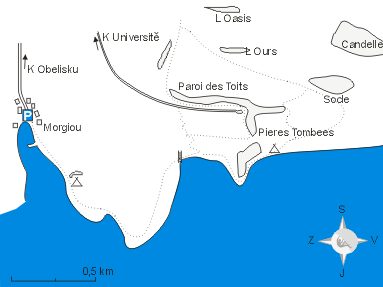 Rychlejší přístup ke stěně je od Marseillské university, to se směřujte na Mazargues od obelisku pak na Universitu.