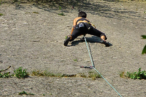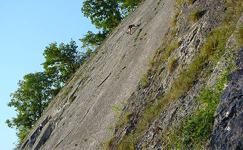 Kvalita vápence je velmi dobrá, co také uloupnout na totálně hladkých plotnách, kde prakticky není žádný výstupek. Již s tohoto popisu je jasné, že nejvíce se tu uplatní lezení na tření a dobré vyvažování.