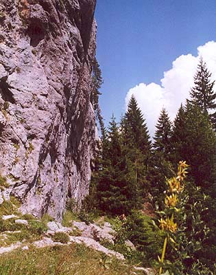 Prijezd: Annecy->D16 pak D909 smerem na Thones->po c. 20km nenapadna odbocka vlevo na Thuy/Le Cret. Vzhuru az tam, kde konci asfalt a je parkoviste. Dale pesky stale vzhuru pod skalu (c.50 min).