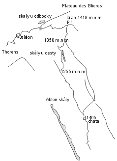 Po silnici N203 z Annency směrem na La Roche Sur Foron. Odbočíme na D2 na Thorens - Glieres. Dále pokračujeme na Usillion a dále do sedla Col de Glieres. V sedle odbočíme doprava a směrem na Dran pokračujeme po šotolinové cestě.