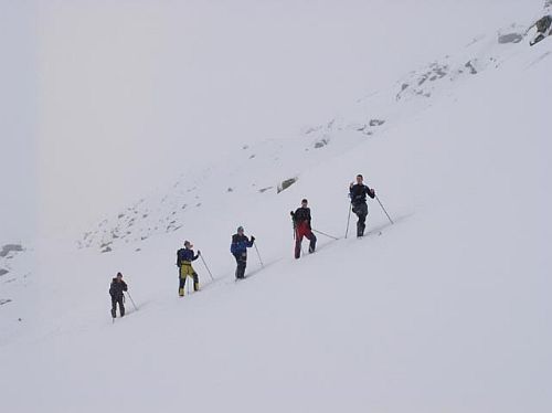 Ta věda je pro neofyty (no dobře, začátečníky teda!),velmi lákavá. Nevím, byla li to výjimka, ale viděl jsem nedávno dvojici, která zabrána do vášnivého rozhovoru a lavinových koeficientech, kvalitách vyhledávačů, tvarech sněhových vloček a podobně, si to mastila napříč sněhovým polem krajně pochybné kvality, pěkně dole, a v nejširším místě, ač o kousek dál to šlo přejít bez většího rizika a dokonce to ani přecházet nemuseli. Nudné základní poučky prostě přeskočili a šli rovnou na vědu, což mi přijde krajně nebezpečné. A tak o tom žvaním a žvaním a...třeba přestane pršet, nezoufejte!