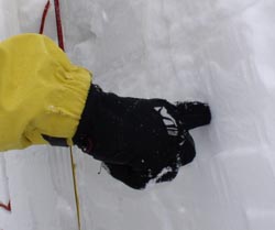 Prohlídněte jsi fotky klouzavého bloku. Bombastické, že. Jenže - horolezec se během tůry pohybuje, za den musí překonat několik různých svahů. Má všude kopat sondu? To nejde ani stihnout. Může vykopat tak jeden klouzavý blok ráno, než vyrazí z doliny, a to musí jít na kratší výstup, aby stíhal. Výpovědní hodnota malá - to je hezký, že vím jak drží sníh 100 m od chaty, ale až se budu sápat nahoru sněhovým polem na Kolovém štítě, tak to bude o něčem jiném! Stačí blízkost sedla nebo štrbiny, díky zúženému prostoru tu fičí prudší vítr, sníh se zcela jinak ukládá, než na dně doliny nebo otevřených svazích. Převěje, sonda tuto problematiku vůbec nepostihne. Oblačnost, když je část hor zahalená v mracích, je zde sníh zcela jiné kvality.