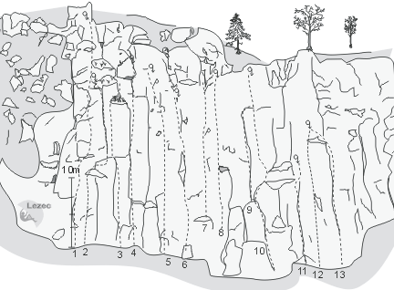 Jedná se o bývalý čedičový lom, kde naleznete zde cesty v koutech, podél spár, ručních i prstových, sem tam širočina, komíny na rozpor. Spáry jsou většinou kolmé až mírně převislé přičemž mimo spáru moc stupů nenajdete. Materiál je příjemný i když místy trochu solivo-lámavý. I když ani jedna ze zmíněných vlastností přesně nepopisuje zvláštní typ šupinatého odlupování povrchu. Povrch se prostě místy lehce odlupuje.
