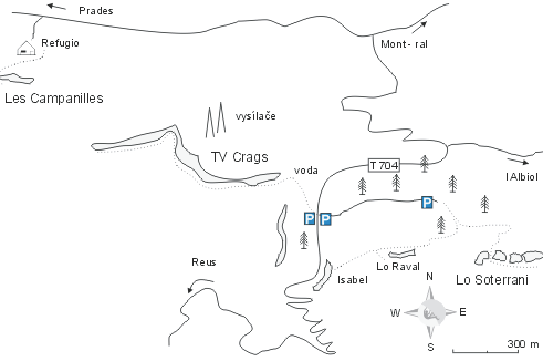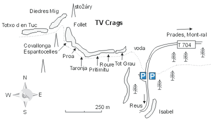 Nejlépe je jet z Reus. Nejdříve po rovné T 704, která jak začne stoupat za městečkem Vilaplana, se i silně začne klikatit. Celou cestu budete mít před sebou nepřehlédnutelný masiv La Mussary. Po překonání největších serpentin zastavíte a necháte auto nalevo či napravo od silnice. Odtud již jen skok (200m) ke stěnám.