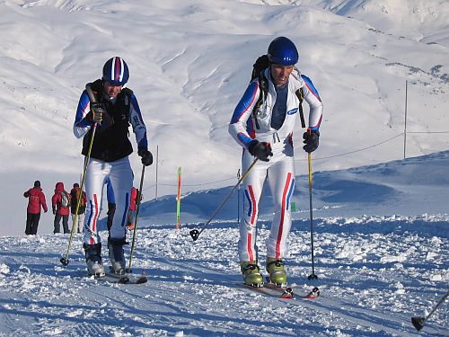 Roman Kuczinský z Beskyd a Pavel Vondra - junior z Krkonoš. Je to v závodě časovka do vrchu, kdy junioři startovali o 15min dříve, tudíž někde v horních partiích při předcházení. - II. MS ve skialpinismu