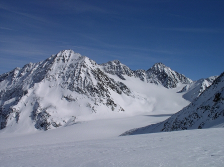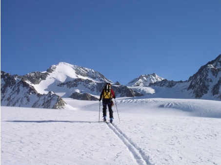 Tuto túru je možné doplnit o předchozí nocleh ve winterraumu Braunsweiger Hütte, kde dost možná budeš se svou milou jen a jen sám. Po překročení sedla Mittelbergjoch máte před sebou krásné, ledovcové skialpové eldorádo. Výstup normální cestou na vrchol Wildspitze není technicky nijak náročný /snad s výjimkou posledního, možná dost ledovatého vrcholového svahu/ ale také není zas až tak moc zábavný. Následující sjezd po ledovci Taschachferner je dost plochý, občas skoro až do kopce, avšak na podzim může být při nedostatku sněhu docela zajímavý.