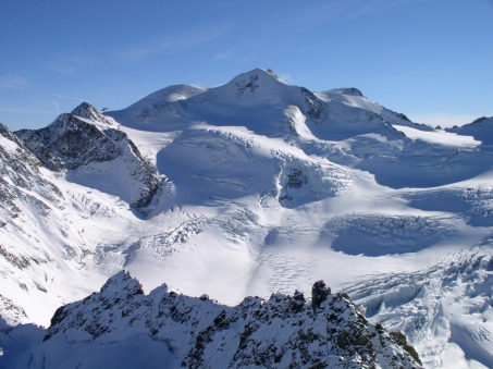 Linker Fernerkogel focený ze sjezdovky- sjezd, případně i výstup vedeme po ledovci vpravo od něj