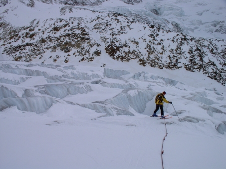 v listopadu je Taschachferner ještě dosti rozervaný, dívku si raději přivažte na špagát, aby vám neutekla…/50 metrů hluboko/