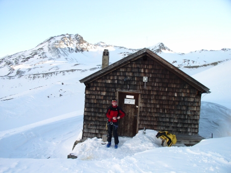 to je pro ni cíl - vytopený domeček, čajíček, romantika  /Winterraum Vernagthütte/