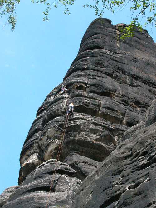 Máj v Sasku už odplynul a po čtyřech dnech mimo civilizaci se vracet nechce. Veškerý smysl života je tam, nad korunami stromů ve stěnách, s rozedranými prsty, bolavými svaly, u večerního ohně a za ztichlého ranního svítání.