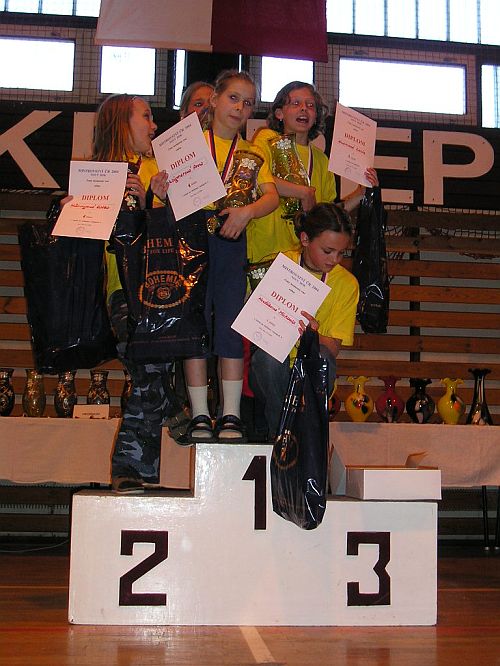pět dívek: Hoďáková Michaela (TRIOP; Tukan team Velenice), Häringová Kateřina (TJ Jiskra Nový Bor), Wágnerová Anna (TJ Jiskra Nový Bor),  Kosinová Lucie (LK Prachov; TRIOP; Tukan team Velenice), Vopatová Edita (1993 HOSPUL Ústí n. Labem)