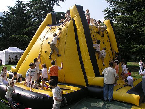 Nafukovací hrad - stěna s lezeckými chyty byla jedním z největších lákadel dětí ze všech kategorií