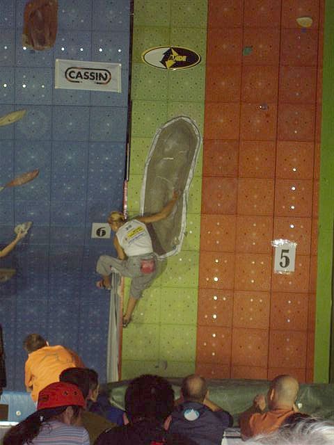 9:15 - Právě začalo kvalifikační kolo v boulderingu. Nelly Kudrová leze 5., Helena Lipenská 29.