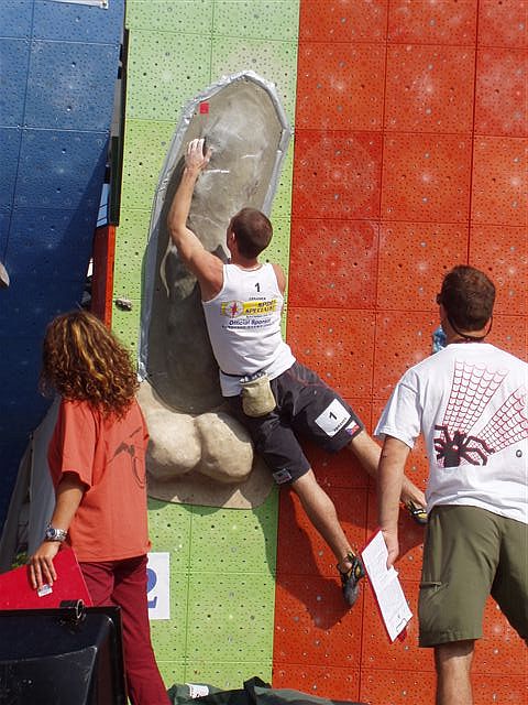 16:00 - Právě skončilo kvalifikační kolo v boulderingu mužů. Naši borci skončili: Kuba Hlaváček 21., Karel Černý 37., Jan Zbranek 41.