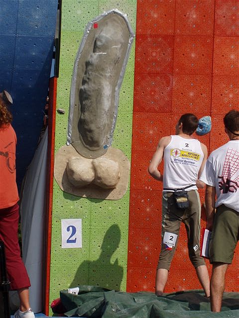 9:00 - Začíná kvalifikační kolo v boulderingu mužů. Naši lezou v pořadí - jako první Jan Zbranek, jako druhý Kuba Hlaváček, jako pátý Karel Černý.