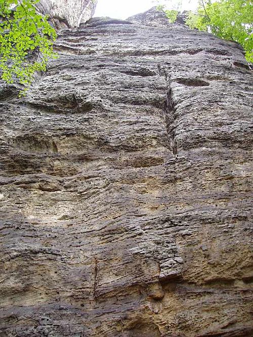 Lezení v Sasku je poctivá pískařina, kruhy se výrazně šetří, co si nezaložíš nemáš a padat se moc nedoporučuje! Výška stěn k 80ti metrům, první kruhy, pokud jsou, tak se nám často vysmívají v nějakých třiceti metrech! A Sasko je hlavně morál, morál a morál!