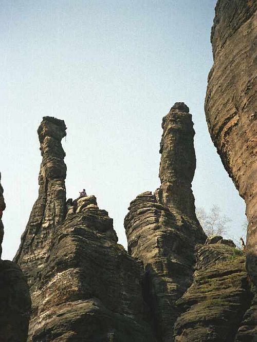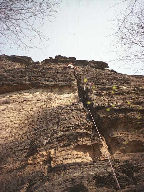 Sasko je v době porevoluční (myslím revoluci 1989, ne tu 1917!) poněkud zapomenuto, Evropa se otevřela a „východní“ Německo už tolik neláká. Odliv lezců ze saského písku je celkem logický – umělé stěny, sportovní lezení, přejištěné vápno! Kdo by ještě dnes jezdil klepat bobky 10 metrů nad kruhem v klíčovým fleku a následně házel krásný vzdušný držky do kruhu u kterýho sedí nešťastný vyděšený spolulezec. Nic proti překližce, nic proti vápnu, mám rád obé, ale písek, ten jak se jednou zadře, tak ho ničím nevydrhnete!!