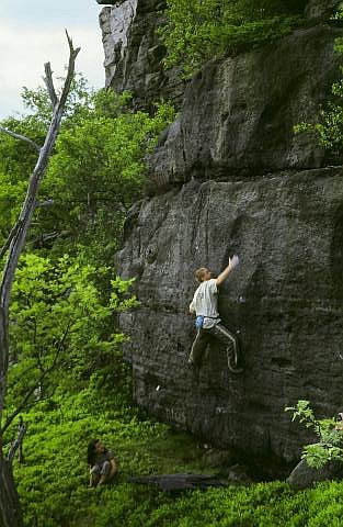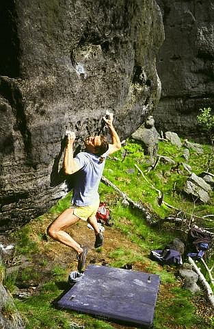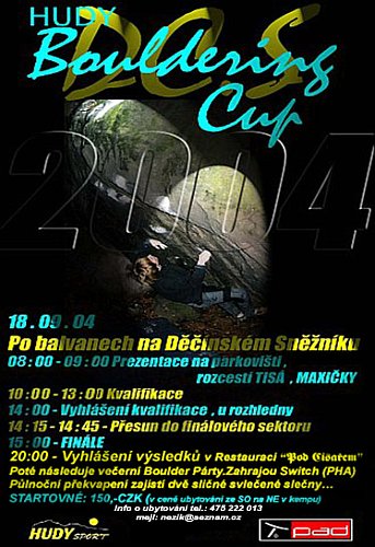 Co dál: Doporučujeme vzít si sebou boudermatku,vhodnou obuv do lesa,hafo mága.Dál bych rád pozval i ty kteří si nejsou jisti,jestli maj či nemaj závodit.Vždyť jde přeci hlavně o to si pořádně zalézt a podívat se na to co se v tomhle odvětví lezení vůbec děje.Hlavně proto, že Sněžník je magické místo s krásnými výhledy a velice zajímavou historií opředenou Fašistickými velikány.Hlavní dominantou této stolové hory je 30m vysoká kamenná vyhlídka,která je prý jedna z nejhezčích ve střední Evropě.Jo a prý dorazí i boulder gang ze sousedního Bahratalu.
