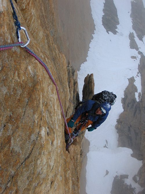 Lezenie bolo od začiatku ťažké. Kolmé široké špáry, hladké platne, rozbité komíny. Navyše na konci prvého dňa sme ostali bez vody a varenia. Dehydrovaní sme prečkali do ďalšieho rána.