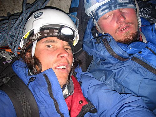 Až na štvrtý deň sa nám podarilo doliezť pod headwall – kľúčové miesto výstupu. Tu na nás čakalo to najťažšie lezenie v podobe otvorených véčkových špár s problematickým istením. A navyše ešte aj snežilo. Noc bola studená ( -15 C ), o spaní sa nadalo ani hovoriť.
