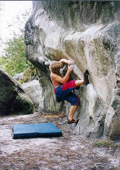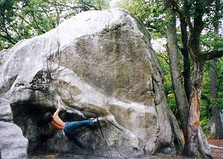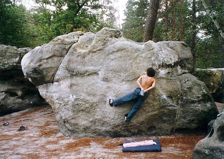Do Fontáče jsme jeli s jednoduchým cílem: Zjistit, co že to ten bouldering je a pořádně si na těch kamenech zařádit. Věděli jsme, že bouldry mají své specifické a tvrdé hodnocení. Zvláště potom ve Fontainebleau. Vůbec jsme nevěděli, kde se pohybuje naše výkonnost na bouldrech. Musíme se přiznat, že jsme nečekali, že bychom mohli přelézt nějaký boulder těžší než za sedm. Po třech rozlézacích dnech se nám podařilo za mohutného řevu abááááá, vystrašení místní zvěřiny a vystrašení dětí, přelézt problém Cortomaltése za 7a místní tvrdé klasifikace.(foto) Odměnou bylo za to hecování anglické partičky a následný potlesk.
