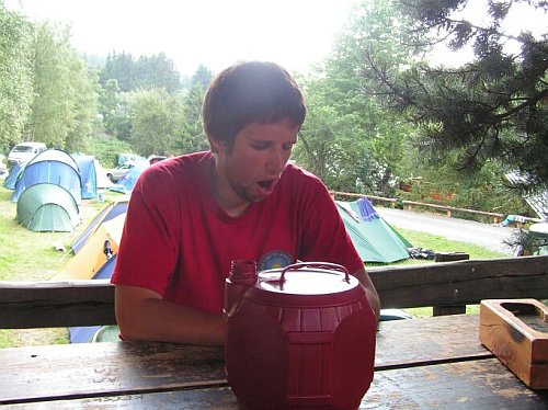expediční camp s expedičnim vínem a Tlapíkem v rozmaru více než dobrém