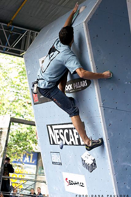 16:00 Přes půlku mužů má kvalifikaci odlezenou. Zatím je největším favoritem asi Jirous Přibil, který dal všechny topy. Z dalších možných favoritů mají ještě lézt např. Juraj Repčík (SK), Jakub Hlaváček a Tomáš Stejskal. Přihlíží na 800 lidí. Přehnala se přeháňka, ale zase je hezky, nálada skvělá.