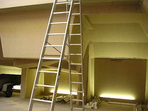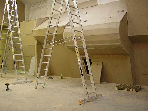Stěna bude v Holešovicích u výstaviště, v Bubenský ulici. Ty profily s výlezem na rajbas jsou udělaný proto, aby to co nejvíc odpovídalo skutečnosti se skálou a taky pro zvýšení maximálky. To že vylezeš z převisu je dobrý, ale když z převisu přelezeš ještě do rajbasu, je to ještě lepší. Rajbas nahoře bude jen pro ten výlez.Ta bouldrovka bude udělaná netradičně, tak aby vyhovovala lezcům a podobala se zahraničním bouldrovkám. Záměr stavěče není udělat jen převislou desku, ale chce, aby byla dokonalá. Na bouldrovku se budou přidělávat chyty příští tejden a bude hotovo. Pak ještě velká stěna a další. Až to bude hotový, tak přijdou další fotky, prej ještě lepší.