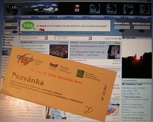 Co teda musíte udělat. Stačí na brněnském výstavišti zajít na recepci výškové budovy u brány č. 1 a zde požádat o pozvánku, kterou vám pak v pokladně bezplatně vymění za vstupenku. Na zmíněné recepci musíte říct heslo: "Prosím o pozvánku od serveru Lezec.cz." Pozvánka měla platit už od pátku, ale jak jsme se dozvěděli před chvílí (v pátek ráno), jsou platné jen na víkend, a to pro jednu osobu na jeden den.