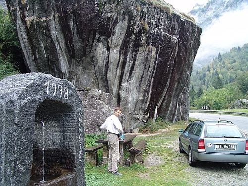 Podél cesty podél skal je řada parkovišť vybavených nejen fontánou s pitnou  vodou, ale i cedulí, zákaz nočního parkování kempinkových aut.