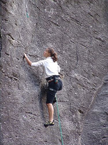 Sektor Parete sud - Cesta: King Kong, 6a pohodové plotnové lezení v pevné skále