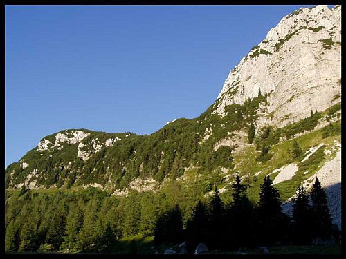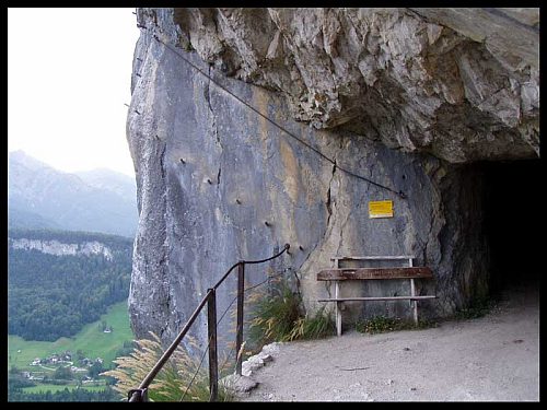 Kdyby pod skalou na fotu " Nástup na Ewige wand" tekla líně řeka, tak bych přísahal, že ta díra je vchod do štoly v patře Alkazáru. Ale řeka tam není tak to asi nebude ono, apropo neuděláme si v Alkazáru také feratu :).