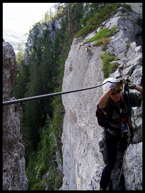 V září 2004 náš tým čítající dvě osoby vyrazil do Rakouska na rozmezí pohoří Dachstein Gruppe a Totes Gebirge ochutnat krásy zdejších hor a pocit lezení na zajištěných cestách. Tuto oblast jsme si vybrali právě pro její snadnou dostupnost z Čech. Na cestu jsme vyrazili s potřebným vybavením (sedák, prsák, helmy, ferrata sety, pro větší bezpečnost jsme ještě používali cca 8m lano) na jištění a informacemi převážně z průvodce Klettersteigatlas Alpen a z webových stránek Klettersteige