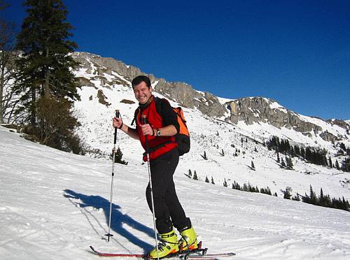 Abfahrt: Die Standardabfahrt führt durch die Schallerrinne, die etwa 300m westlich des Graf-Meran-Hauses ansetzt. Eine weitere Abfahrtsmöglichkeit ist das Hundsschupfnloch (Steilrinne, nur bei besten Bedingungen befahren!!), die unweit östlich des Graf-Meran-Hauses ansetzt, und in den Lahnboden hinabführt.