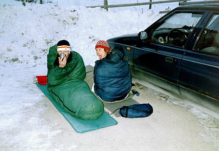 Vyrážíme v pátek v šest večer směr Grossglockner. Původní plán pokusit se podruhé o Pallaviciniho nám hatí závora a dvacet čísel sněhu na Glocknerstrasse, takže najíždíme plán B a jedeme pod Glockner od jihu s tím, že něco pokusíme od chaty Stüdlhütte. K Lucknerhausu dorážíme někdy v jednu v noci, je kosa jako blázen. Po parkovišti jsou poházení spící skopčáci v obrovských péřácích…já smutně vybaluji svýho pět let starýho thinzulejta a s vidinou brzkého svítání zalézám spát do auta. Jarda s Okubem jsou tvrdí hoši a uléhají vedle auta….brrr.