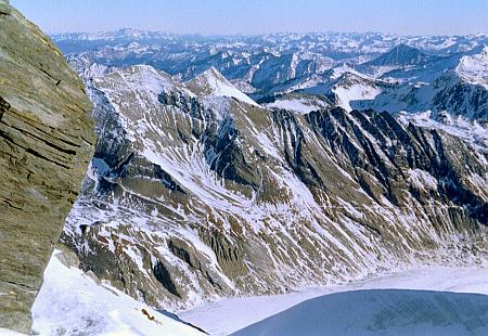 Pohled zpět na část hřebenu a S-stěnu Glocknerwandu
