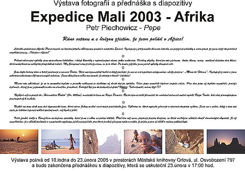 Fotečky tam budou od 10. ledna do 23. února, téma Expedice Mali 03 - Afrika a něco málo z mé tvorby.