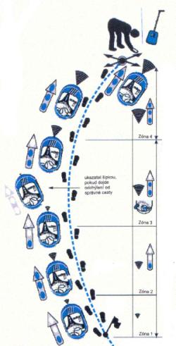 • není schopen přesně určit směr k zasypanému