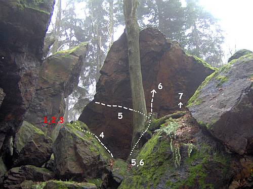 No, tak Tome, s tou překližkou jsi to přehnal. Ale v době, kdy jsou všichni v p... a není, kdo by mě jistil, se většinou do něčeho navezu a po pár metrech už jen následuje rozhodování, jestli to dolézt, nebo se vrátit. Ale jak určitě tuhle oblast znáš, dá se tam lézt i s těma provázkama. Mám živě v paměti Brtníka na Hadí Královně v semiškách na nohou a chyty značkovaný krví z jeho bolavý ruky. Takže mám ke každýmu šutru takovej zvláštní vztah. Je fakt, že tenhle příspěvek je spíš tip pro ty, co by chtěli a nevědí kde. Je ti Tome asi jasný, že při mý lenosti určitě nebudu drhnout lišejníky z kamení.Jinak některé popisované oblasi mají pěkné jištěné cesty, tak hurá do toho!
