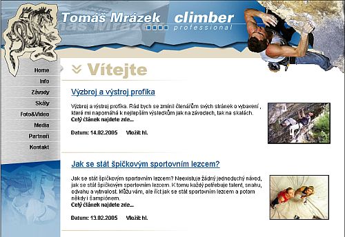 smallMistr světa a vítěz Světového poháru 2004 v lezení na obtížnost Tomáš Mrázek si založil v těchto dnech své internetové stránky,