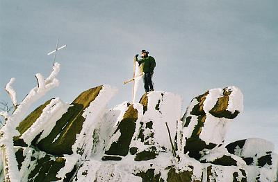 Necháváme za sebou poslední chaty, v zimních měsících povětšinou neobydlené a do půli zasypané sněhem. Ve vzduchu je cítit nastupující podvečer, slunce se zhouplo nad horizont. Stopa tu ještě kus pokračuje, čerstvý sníh se však začíná nepříjemně bořit. Asi po 2 kilometrech potkáváme sněžný skútr s dvoučlennou posádkou jedoucí proti nám a přestupujeme do vyjeté koleje. Vítr znatelně zesílil, my však udržujeme stále stejné tempo. Zanedlouho dorážíme k plotu flájské obory. Naše cesta vede kolem něj až na vrchol. Začínáme pomalu stoupat hlubokým sněhem, na každém metru je znát citelné ochlazení od štiplavého větru. Plot se občas začíná téměř celý ztrácet pod mohutnými závějemi. Nemusíme příliš pospíchat, jak se zdá, čas je letos náš přítel. Minulé roky jsme sem vystoupali skoro vždy za tmy. Loni jsme se kvůli značné ztrátě rozhodovali, jestli bivak nerozložíme někde pod horou. Teď nám zatím vše vychází. Několik posledních metrů a vítají nás menší skalky zahalené do ledové róby. Kolem 16.hodiny konečně stojíme na vrcholu Loučné a alespoň jednu minutku se kocháme výhledem na okolní krajinu...