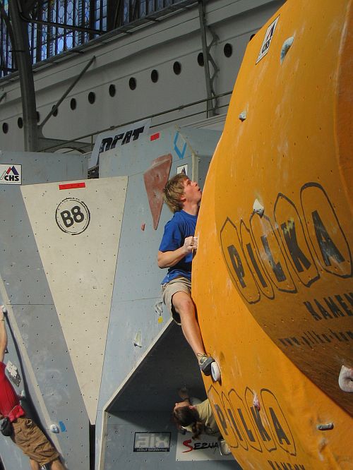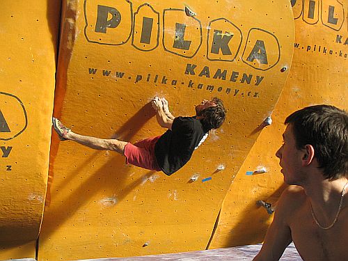 Favoriti závodu Jirous Přibil, Miško Turský, Honza Zbranek a Kuba Hlaváček se nám zcela propadli pod bednu a místo nich na ní hrdě vystoupali Radovan Souček, Marek Leitman a Ondra Beneš. Radovan předvedl perfektní výkon, kdy přelezl čtyři bouldry na první pokus a zaslouženě vyhrál. Marek také přelezl čtyři bouldry, ale až na sedm pokusů a Ondra tam poslal bouldry tři.