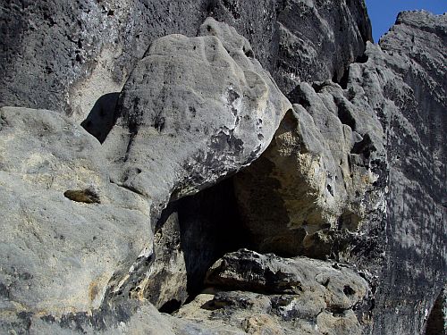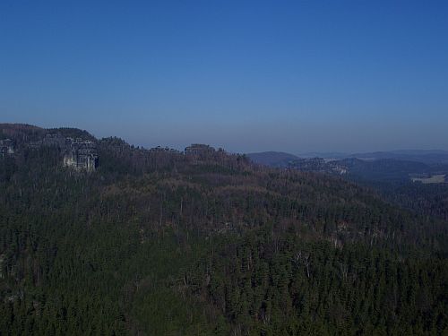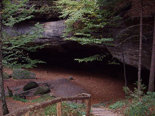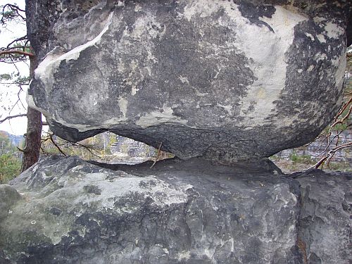 Tam kde končí asfalt a začínají  křížky (zákaz „průchodu“ k Pravčické bráně), zamkněme svého bejka či mulu k nejbližšímu smrku a mastěme do kopce k obr-mega-giga jeskyni Hickehöhle, která se zdá býti ideálním bivouckem pro menší městečko! Bohužel její poloha přímo u cesty ji ze seznamu útulků rázně vyškrtává! Od jeskyně se již nechme vést geniálními mapkami v průvodci pana Heineckeho a neměli bysme zbloudit.